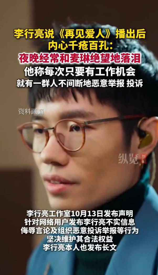 节目中的冲突或许有剪辑痕迹,但镜头外的痛苦却是真实的。李行亮描述,许多夜晚他与麦琳在沙发上相对落泪,自责、愧疚等情绪“压得人喘不过气”。更令他无奈的是,社交形象被彻底标签化,甚至因舆论风波遭到活动除名。而此前邀其演唱主题曲的剧组、播出平台均遭恶意投诉,事业与生活双双陷入漩涡。